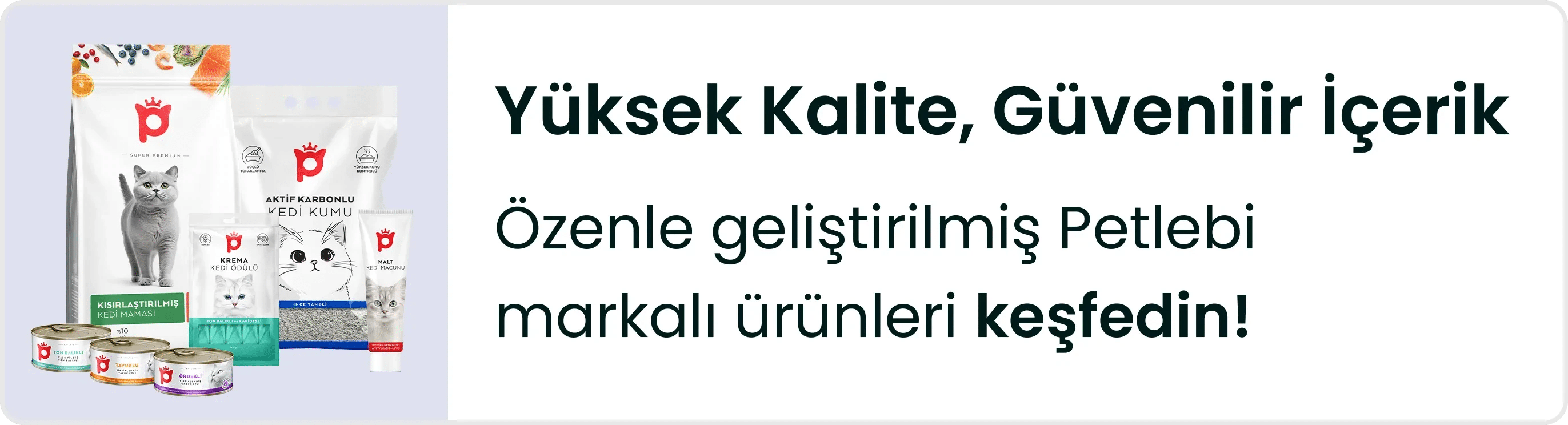 Sağlıklı ve dengeli beslenme için dünyaca ünlü markaların kedi mamaları, ödül mamaları ve vitaminleri; hijyen ve rahatlık için kedi kumları, tuvaletleri, tırmalama tahtaları ve yatakları; bakım ve sağlık için kedi şampuanları ve tarakları gibi ürünler Petlebi.com’da! Mama ve su kapları, eğlenceli kedi oyuncakları ve kedi taşıma çantaları da Petlebi.com ayrıcalıkları ile bir tık uzağınızda.
