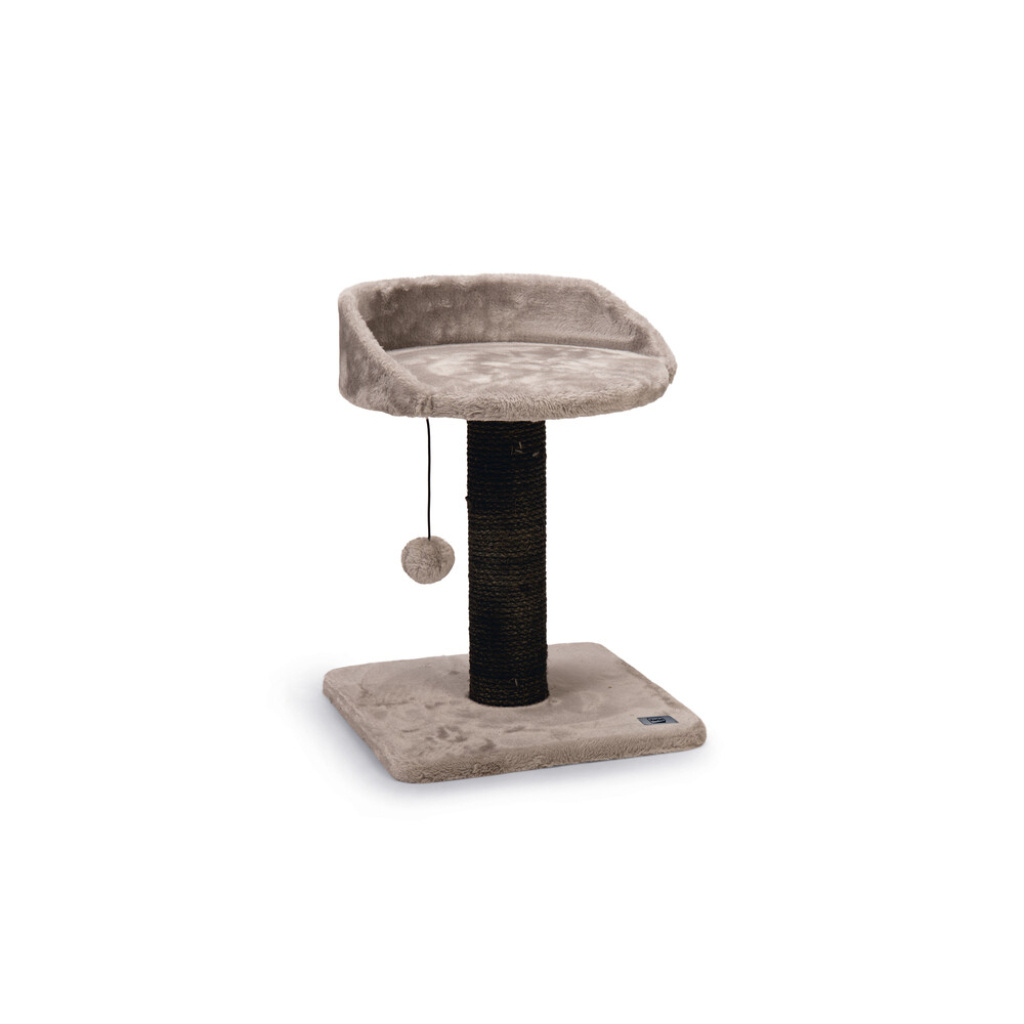 Yumuşak yatak alanı konforlu bir dinlenme sunarken, sisal kaplı tırmalama direği tırnak bakımını destekler.