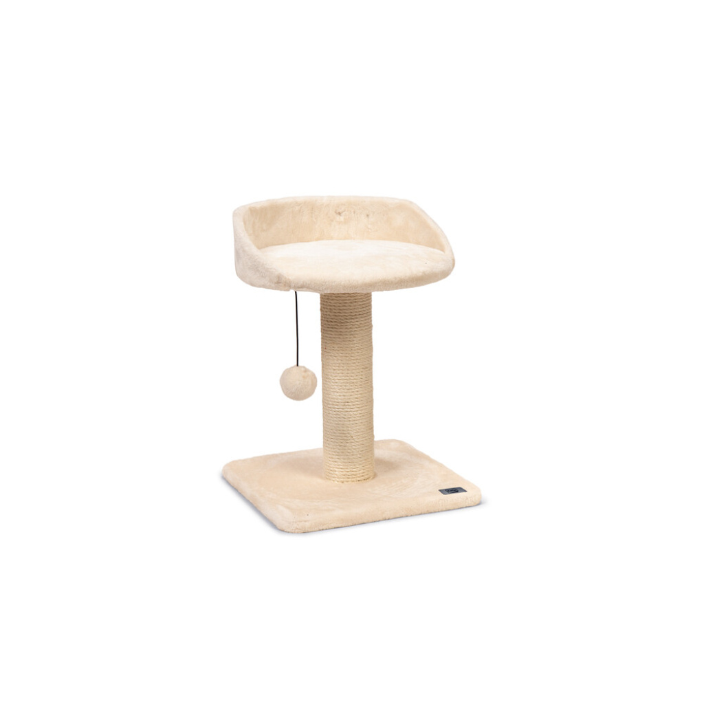 Yumuşak yatak alanı konforlu bir dinlenme sunarken, sisal kaplı tırmalama direği tırnak bakımını destekler.