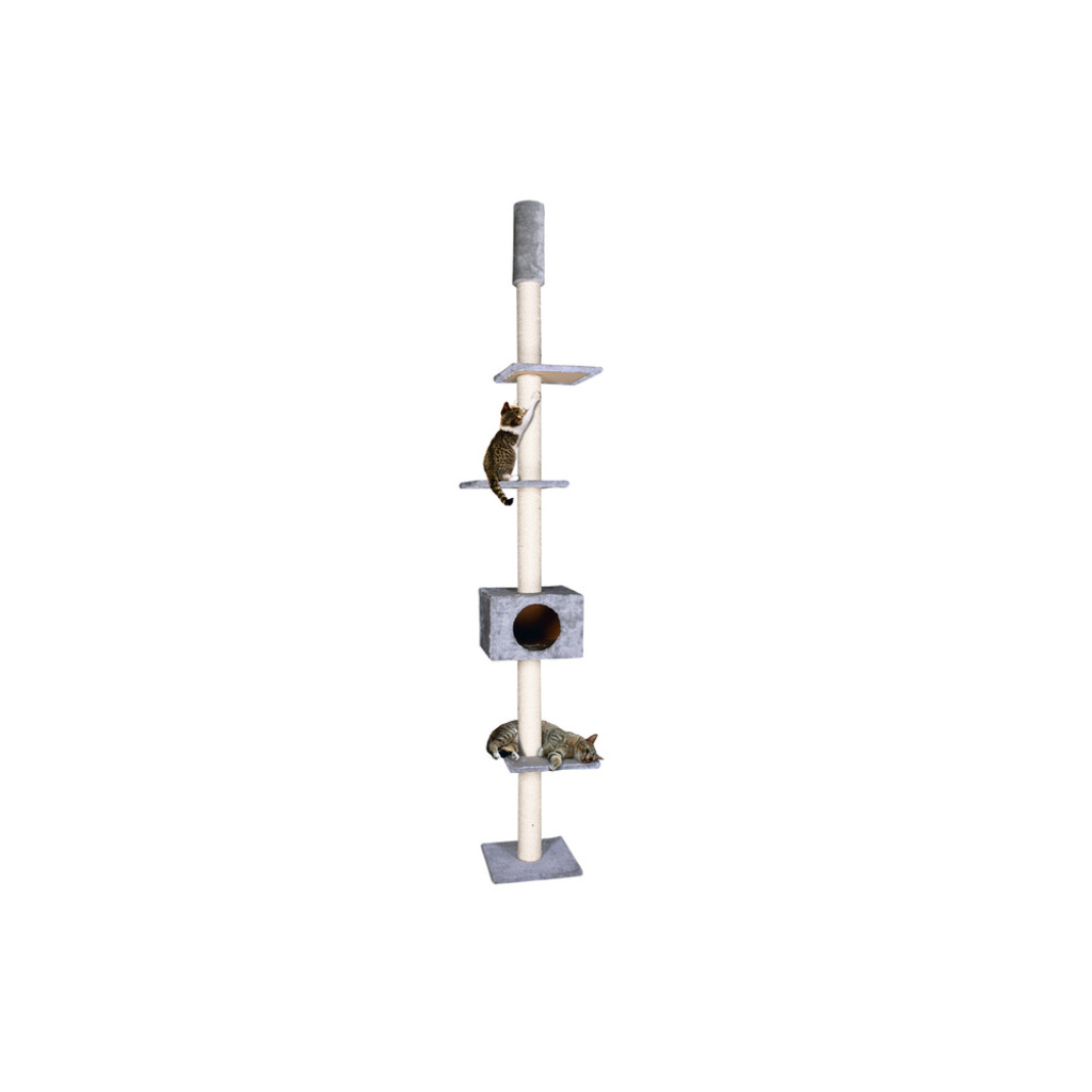 Peluş kaplı platformlar ve tırnak bakımı için sisal direkler mevcuttur.