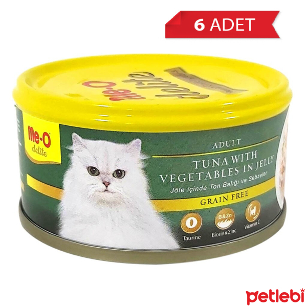 Me-O Delite Jöle İçinde Ton Balıklı ve Sebzeli Tahılsız Yetişkin Kedi Konservesi 80gr (6 Adet)