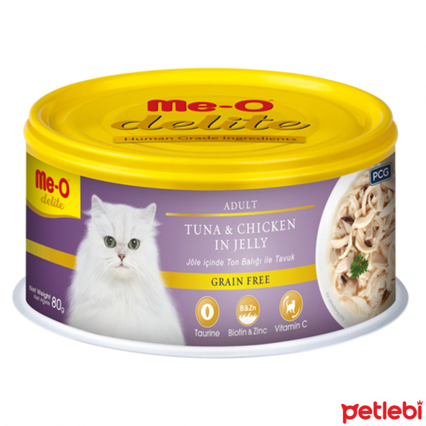 Me-O Delite Jöle İçinde Ton Balıklı ve Tavuklu Tahılsız Yetişkin Kedi Konservesi 80gr