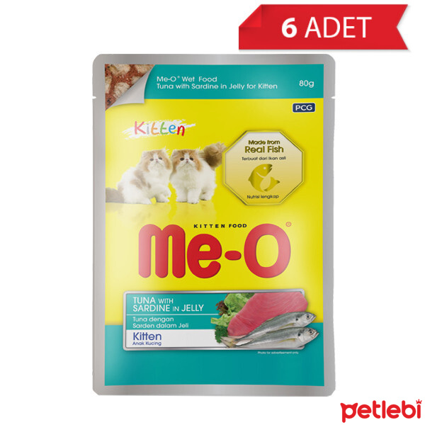 Me-O Jöle İçinde Ton Balıklı ve Sardalyalı Yavru Kedi Konservesi 80gr (6 Adet)
