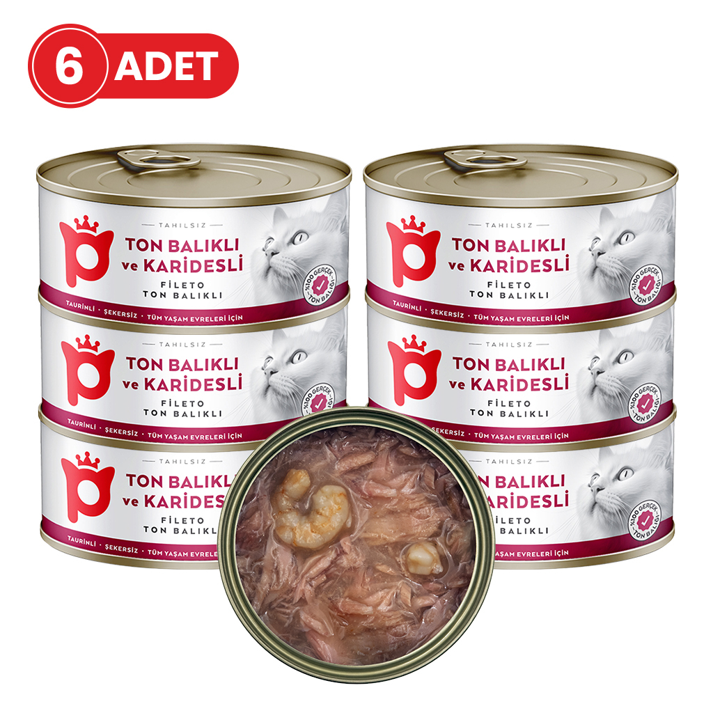 Petlebi Sos İçinde Fileto Taze Ton Balıklı ve Karidesli Kedi Konservesi 70gr (6 Adet)