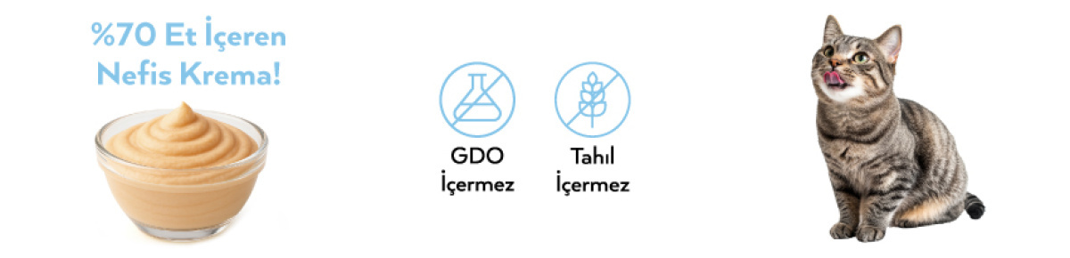 Yüksek et oranına ve eşsiz lezzete sahip krema formunda kedi ödül mamasıdır.