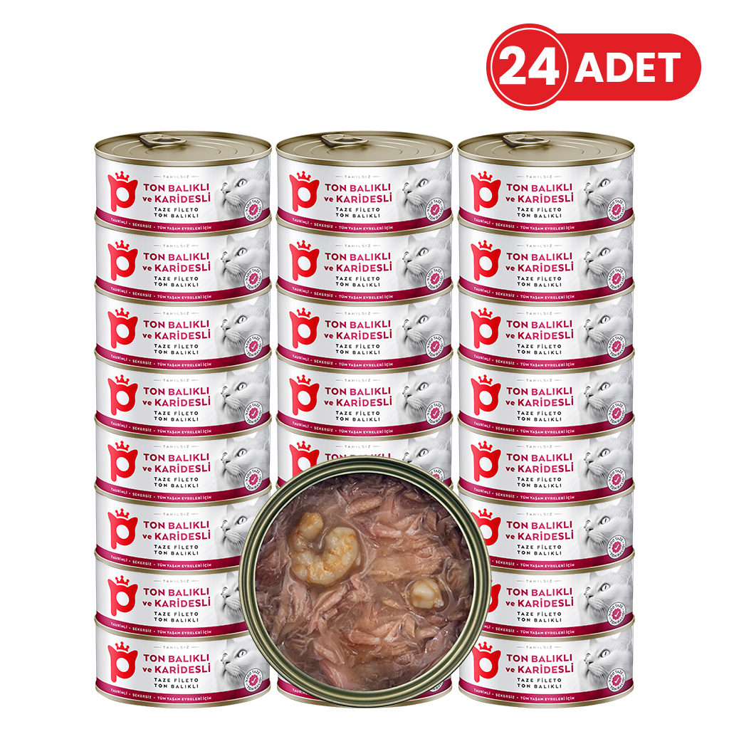 Petlebi Sos İçinde Fileto Taze Ton Balıklı ve Karidesli Kedi Konservesi 70gr (24 Adet)