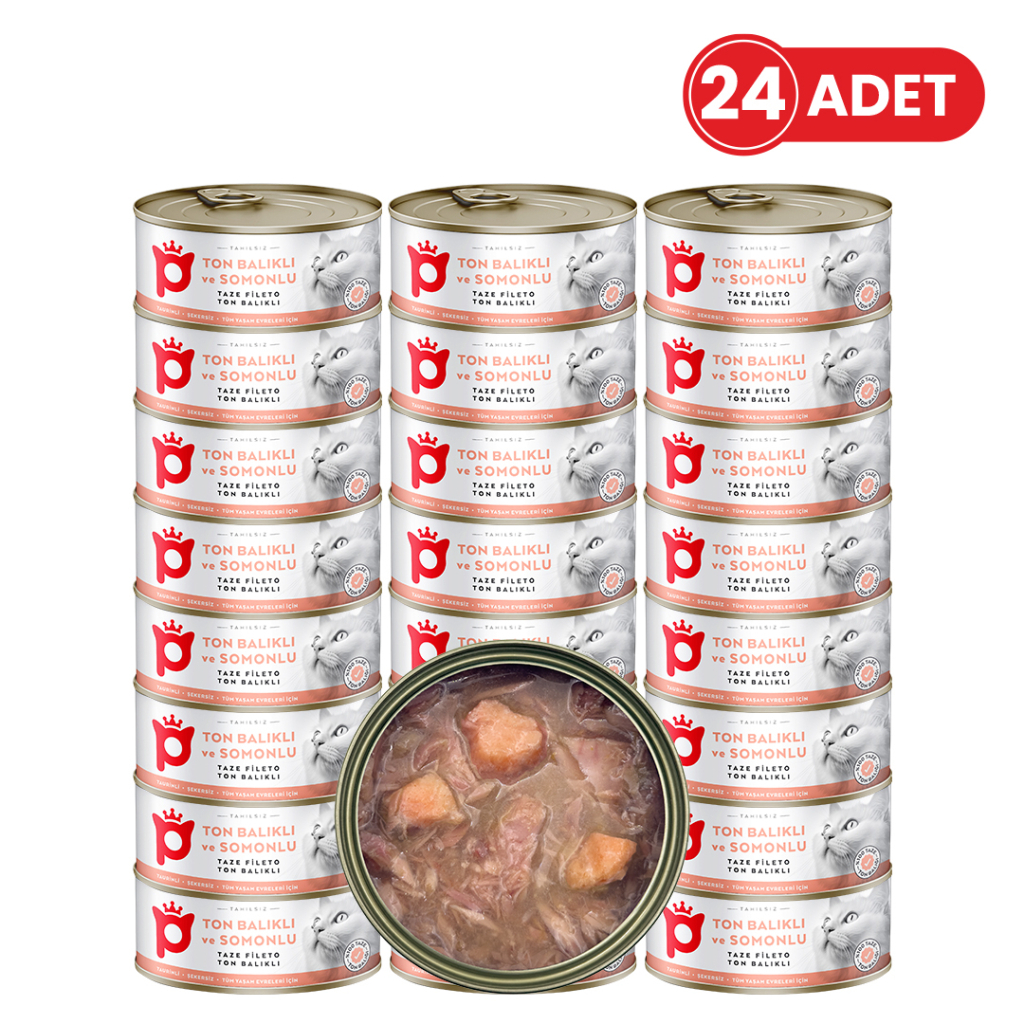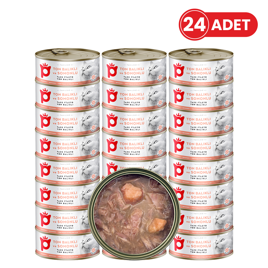 Petlebi Sos İçinde Fileto Taze Ton Balıklı ve Somonlu Kedi Konservesi 70gr (24 Adet)
