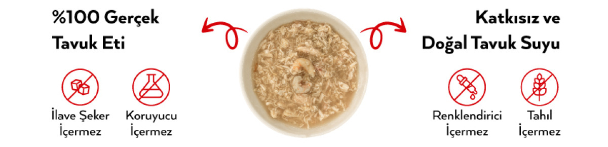 Tek sorunu içindeki karidesin az oluşu olabilir ama kedim bayıldı😍 yapısı gerçekten sulu içine birazcık içme suyu ekleyip kedi çorbası gibi verdim kedime,çok sevdi sıvı alımlarını arttırmak için güzel bi alternatif olabilir