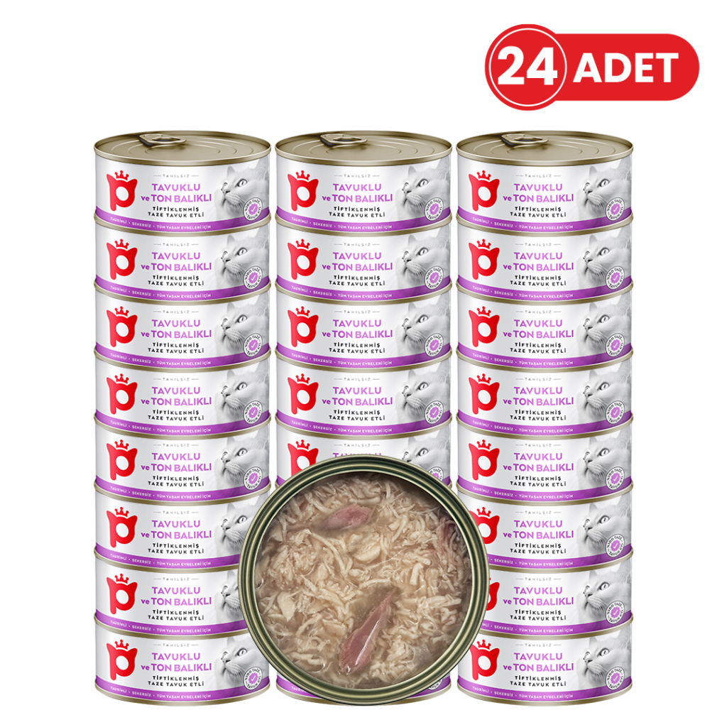 Petlebi Sos İçinde Tiftiklenmiş Taze Tavuk Etli ve Ton Balıklı Kedi Konservesi 70gr (24 Adet)