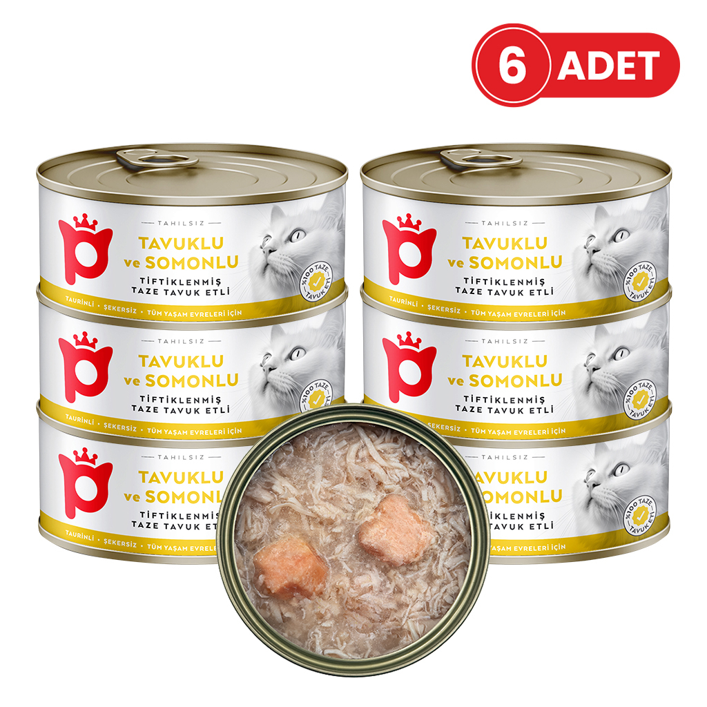 Petlebi Sos İçinde Tiftiklenmiş Taze Tavuk Etli ve Somonlu Kedi Konservesi 70gr (6 Adet)
