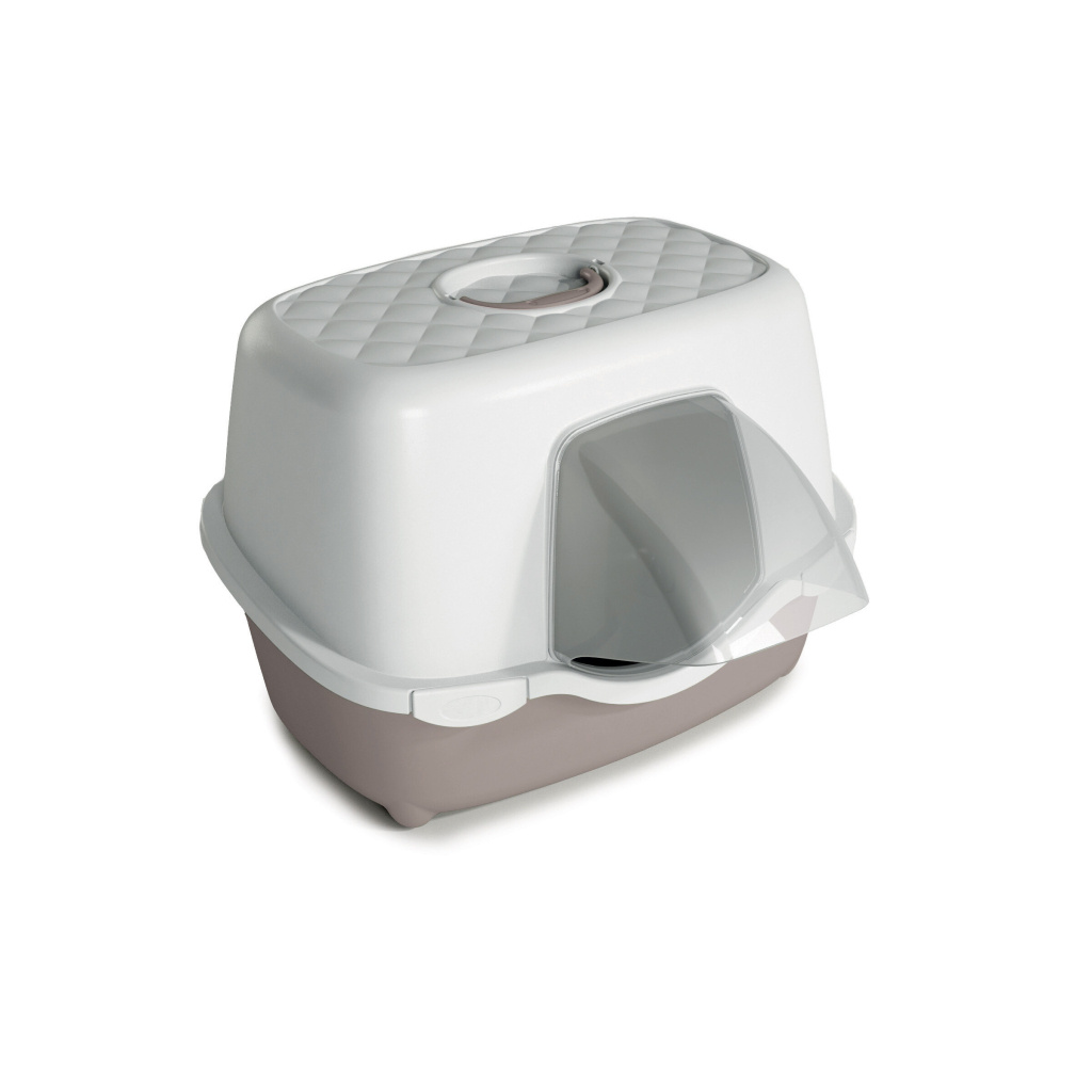 Taşımayı kolaylaştıran üstten saplı, dayanıklı ve temizlemesi kolay, siperli girişe sahip, açık hava kullanımına uygun kapalı kedi tuvaletidir.