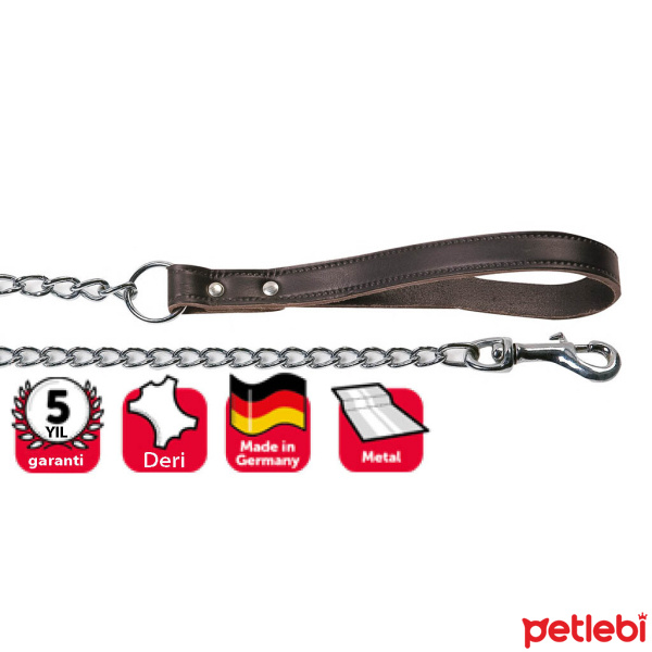 Karlie Deri Saplı Zincir Köpek Gezdirme Kayışı 100cm (Kahverengi)