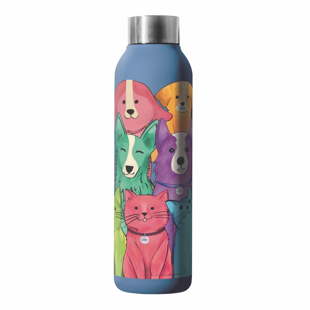 M-Pets Petjoy Purrfect Petfamily Kedi ve Köpek Desenli Seyahat Termosu 500ml (Mavi)