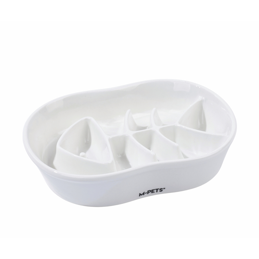 M-PETS Serene Balıklı Seramik Yavaş Yeme Mama Kabı, hızlı mama yiyen kedi ve köpekler için özel olarak tasarlanmıştır.