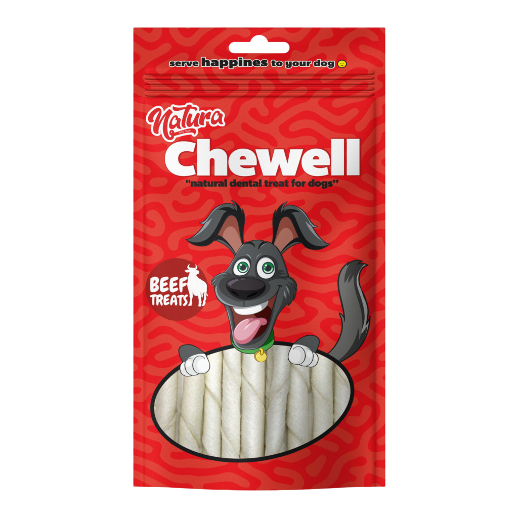 Natura Chewell Sığır Derili Beyaz Burgu Çubuk Köpek Ödül Maması 13cm (25'li)