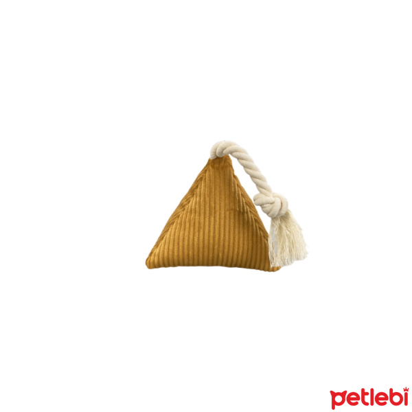 Piramit şeklinde içi elyaf dolu, ucunda oyun ipi bulunan köpek oyuncağıdır.