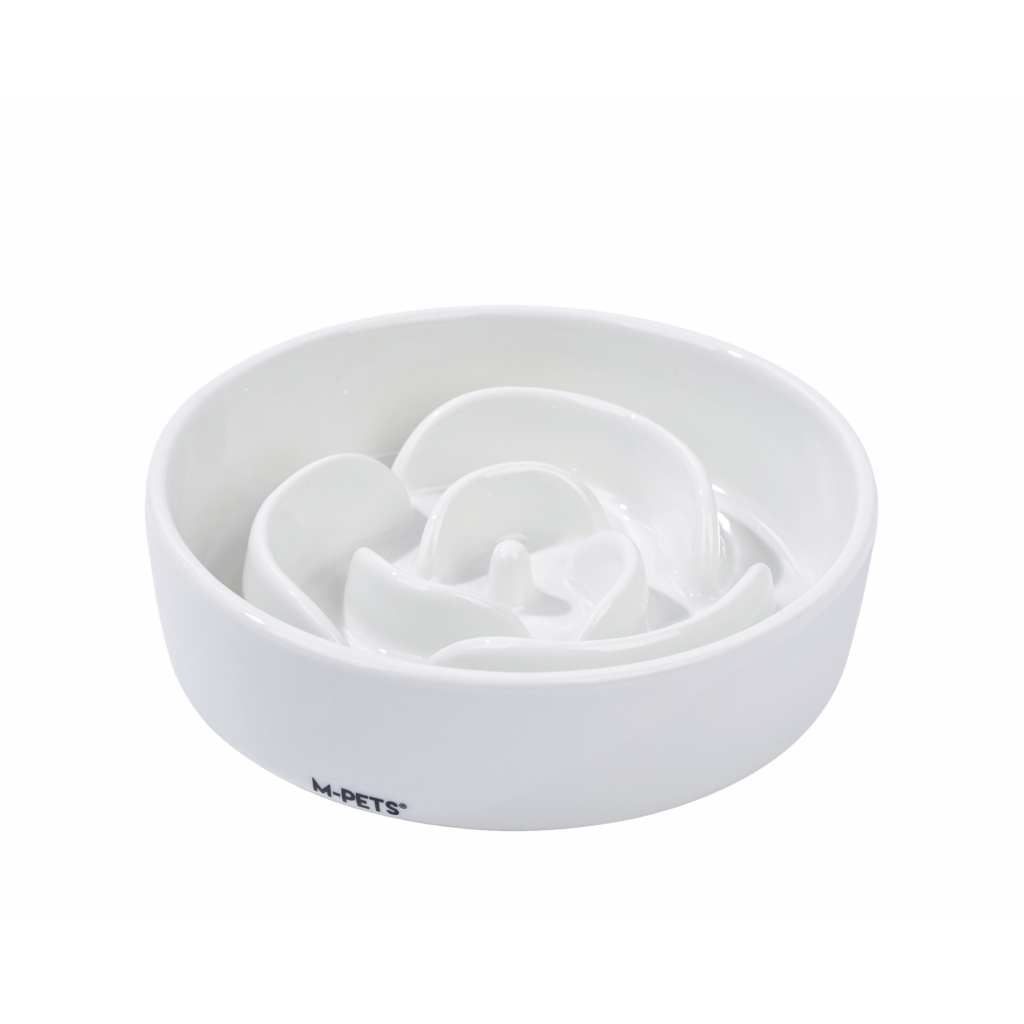 M-PETS Serene Rose Seramik Yavaş Yeme Mama Kabı, spiral formdaki iç yüzeyi ile mamanın tek seferde tüketilmesini önleyerek daha sağlıklı ve bilinçli beslenmeyi destekler.