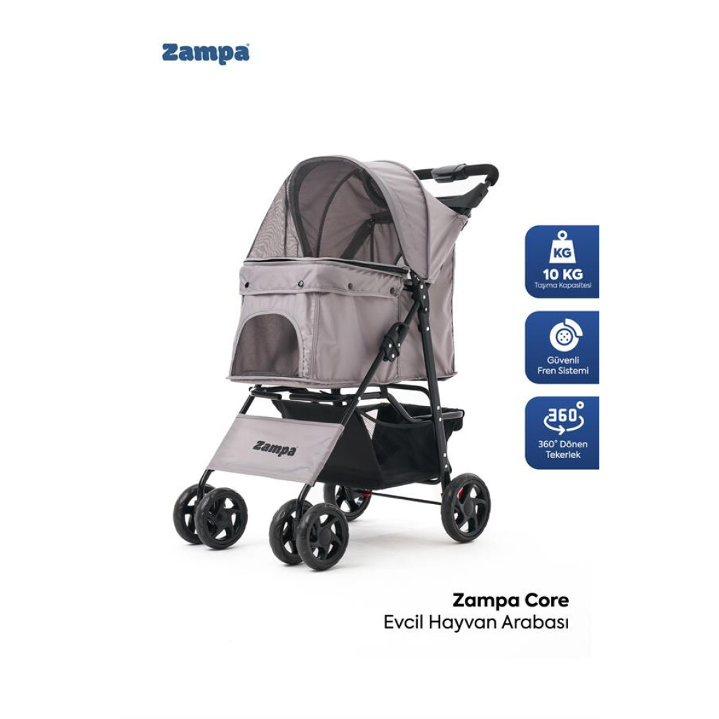 Zampa Core Kedi ve Köpek Arabası 37x55x96cm (Gri)